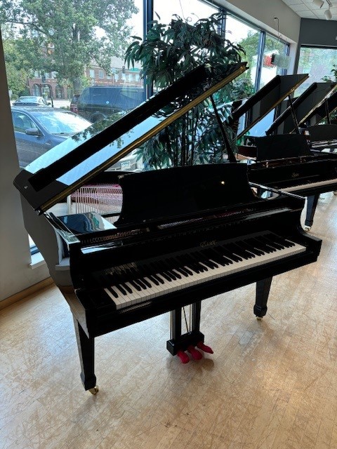 Designed by Steinway & Sons in New York and manufactured at the Pearl River factory. Low-tension design for warmer tone and increased durability. Baby grand (5’1″) design fits easily in any space, features a Polished Ebony finish. 10 year warranty and 10 year Steinway trade-in promise. Includes first in-home tuning and matching bench. CORA, 100546.